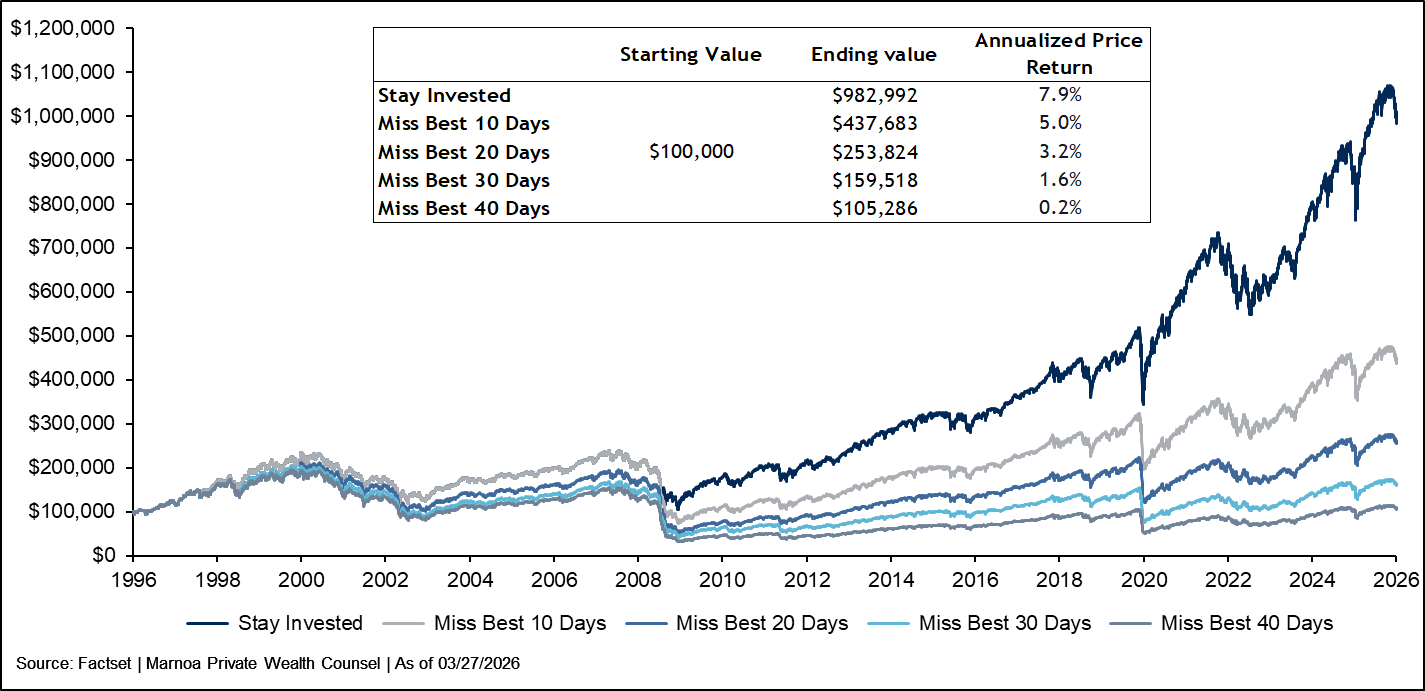 Growth of $100,000 — Fully Invested vs. Missing the Best Days over 30 Years